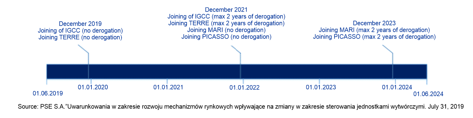 The scheduled integration of the Polish balancing market with European balancing markets is as follows: